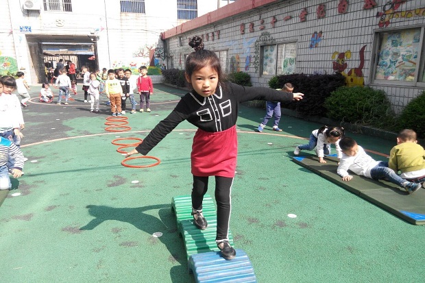 孩子们快乐的一天就这样在运动中开始了,他们主动搬来了各种锻炼器材,三五成群地聚在一起设计各种“闯关”通道。先是“青蛙跳水坑”、“大雁展翅”,再是“美丽的大草原”、“快乐的小车”,最后是孩子们的庆祝活动“闪亮的奥运五环”。每一个关卡,孩子们都布置地井井有条,富有新意。孩子们在整个活动中也玩得不亦乐乎,他们时而钻、时而跳、时而翻滚、时而转圈。你看,孩子们在操场上尽情地奔跑,尽情地欢笑,他们是操场上的精灵,他们让快乐在操场上飞扬,他们让我们的幼儿园呈现出健康、活泼、向上的氛围。
