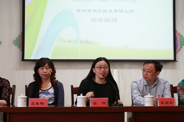 分享交流。武进区机关幼儿园、新北区银河幼儿园、常州市刘海粟幼儿园、金坛实验幼儿园、溧阳书院巷幼儿园等单位就课程游戏化实施情况作现场交流。
