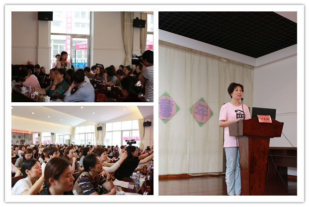 10点10分,蒋惠娟园长用45分钟时间作了《从懵懂到幸福——东青幼儿园课程游戏化建设之旅》的汇报分享。蒋园长从懵懂跟学的满腔热情期、内化融通的静心实践期、重心转移的幸福体味期等三个阶段回顾反思。在懵懂跟学的满腔热情期,东幼用全方位架构、全时段渗透、全资源利用、全游戏贯穿、全脉络打通等五个关键词全面落实幼儿园课程改革的六个支架。在内化融通的静心实践期,东幼转变视角,重视环境和游戏的真正意义,在主题活动背景下,整合一日活动所有资源,让每一各环节发挥最大价值。在重心转移的幸福体味期,东幼系统梳理,领会《指南》要求,把握游戏精神,把重心转移到对孩子的观察、解读、回应和跟进上……三个阶段清晰地梳理出在实践中反思、在反思中实践的螺旋式上升轨迹。