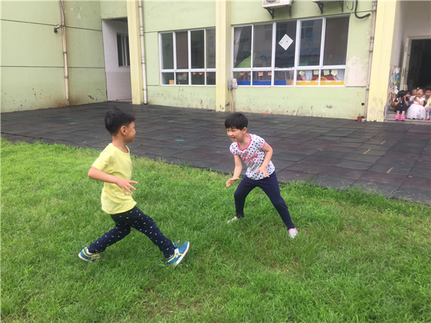 持续火爆的综艺节目《奔跑吧兄弟》孩子们在家都喜欢观看,但其带来的影响却远远超乎人们的想象。其中“撕名牌”三个字最为耳熟能详,如今,这项刺激新潮的游戏风靡了我们幼儿园。在生态运动游戏期间,孩子们进行分组,分成了红蓝两队撕名牌,操场、走廊、足球场都成了他们捉对“厮杀”的开心乐园。这让孩子们长期捧在掌心的手机等电子产品遭到冷遇,在锻炼身体的同时,还促进了幼儿的合作和躲闪跑能力,