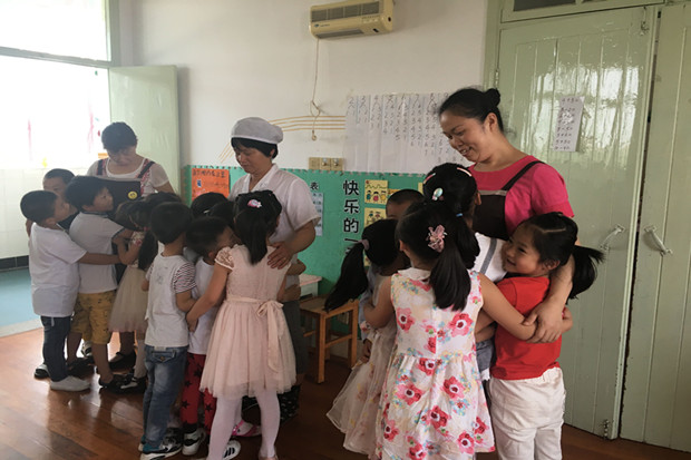 活动二:真情流露,感谢工作人员。孩子们在幼儿园的成长,离不开各个岗位的工作人员的悉心照顾,我们邀请了食堂阿姨,保育员阿姨代表,进行了简单的讲述,孩子们看着这些阿姨们温暖的笑脸,不禁拥上前,抱着阿姨们喊道:“谢谢你们。”如此真情流露,让阿姨们喜不自禁,多年的默默付出也是值得的。