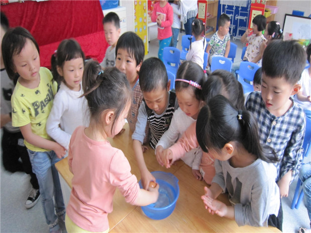 生活是丰富多彩的、真实生动的。而生活之中处处都蕴涵着科学。最近实幼中一班陈姿玥的妈妈带来了一个不起眼的鸡蛋,将孩子们带进了科学的神秘世界,孩子们通过感觉器官观察、动手操作,来寻求鸡蛋沉浮和受压的原理,培养幼儿的科学态度和探究精神。