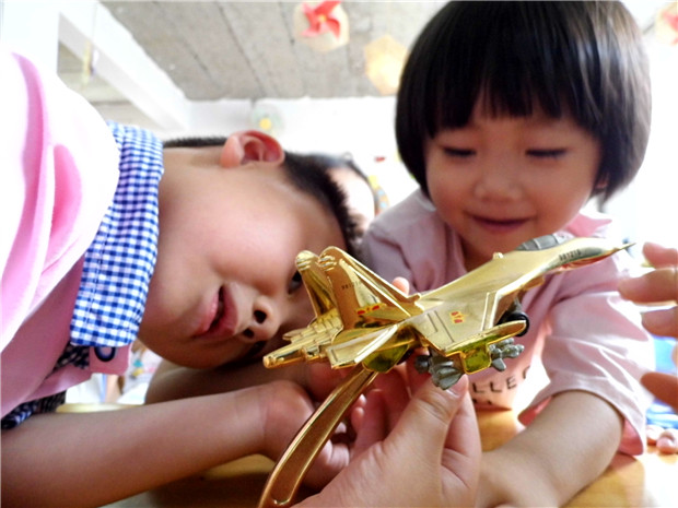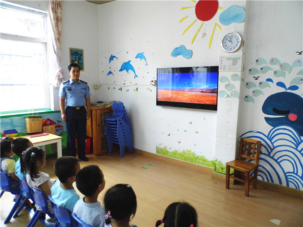 “空军军官”爸爸来到小一班,运用ppt图片和视频以及详尽的解说,为大家带来了空军的国防知识。孩子们了解到雄伟空军战斗机种类繁多,功能齐全。一架架战斗机在空中翻转、盘旋、发射炮弹,让孩子们看得目不转睛。一小时的活动,一转眼就过去了,孩子们听的津津有味、意犹未尽。