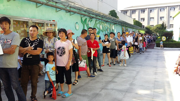 2016年6月30日上午,茶山中心幼儿园门口排满了一个长长的队伍,这些都是小班新生报名的家长,家长有秩序地排队等候,为了方便家长能够顺利的快速的完成报名工作,茶山中心幼儿园领导率领多名教师进行了流水线审核的方式。