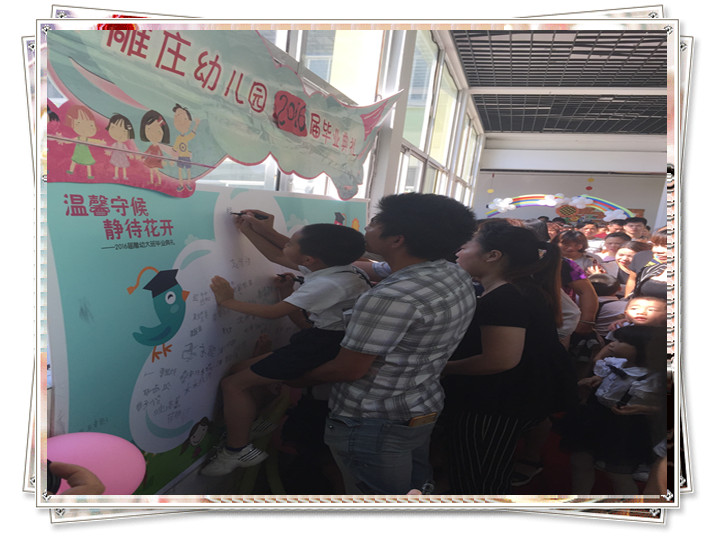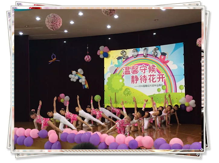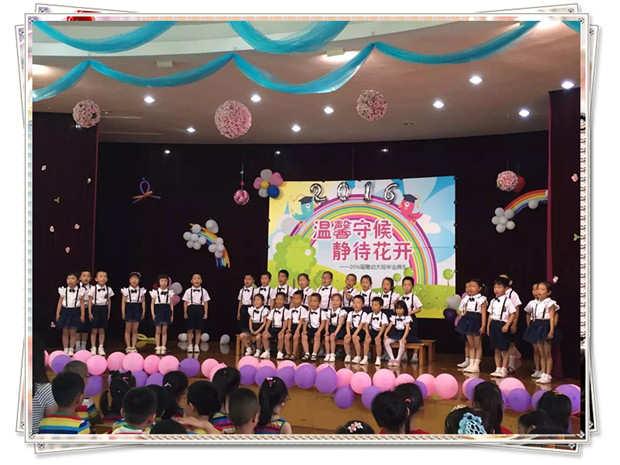 毕业典礼在“回望----凝望----瞩望”三个篇章中拉开了帷幕,大班孩子们朗诵的《毕业献词》更是感人点滴,孩子们用真挚的语言回忆着在幼儿园成长的点点滴滴,传达着对老师真诚的谢意和对幼儿园三年的生活无限的眷念。为了给大班小朋友留下一段幸福、愉快的时光,大班全体小朋友一起踏上了美丽的舞台,尽情展现了他们最闪亮的一面:舞蹈、合唱、手语表演、市体操比赛的球操、徒手操、老师们的音诗画等等,精彩的节目赢来了家长们阵阵热烈的掌声和喝彩声,大班家长代表的发言,道出了所有家长们的心声,表达了三年来对幼儿园、对老师的感激之情。演出接近尾声时,居园长的一席致辞,真诚期盼每个孩子们在今后的成长历程中都能保存这份美好的记忆。最后,毕业典礼在一曲深情的《放心去飞》的歌声中落下了帷幕,这一刻,孩子们哭了、老师们哭了、家长们哭了,一滴滴泪水饱含着脉脉师生情、同学情、家园情,感动的这一刻为孩子们的幼儿园生活划下了圆满的句号。
