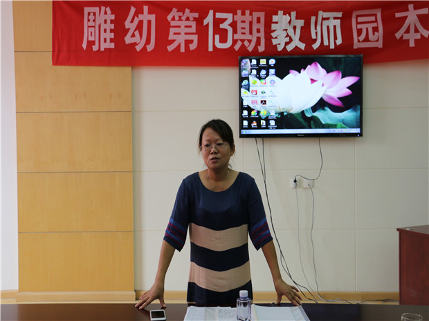 首先,我们开展了简短的启动仪式,启动仪式由居新芳园长主持,雕庄街道办事处许肖薇副主任参加并发表了重要讲话,她从“做有品质、品位的人”“学以致用”“严明纪律”三个方面来勉励全体教师认真参加培训,学以致用,继续打造雕幼的品牌。