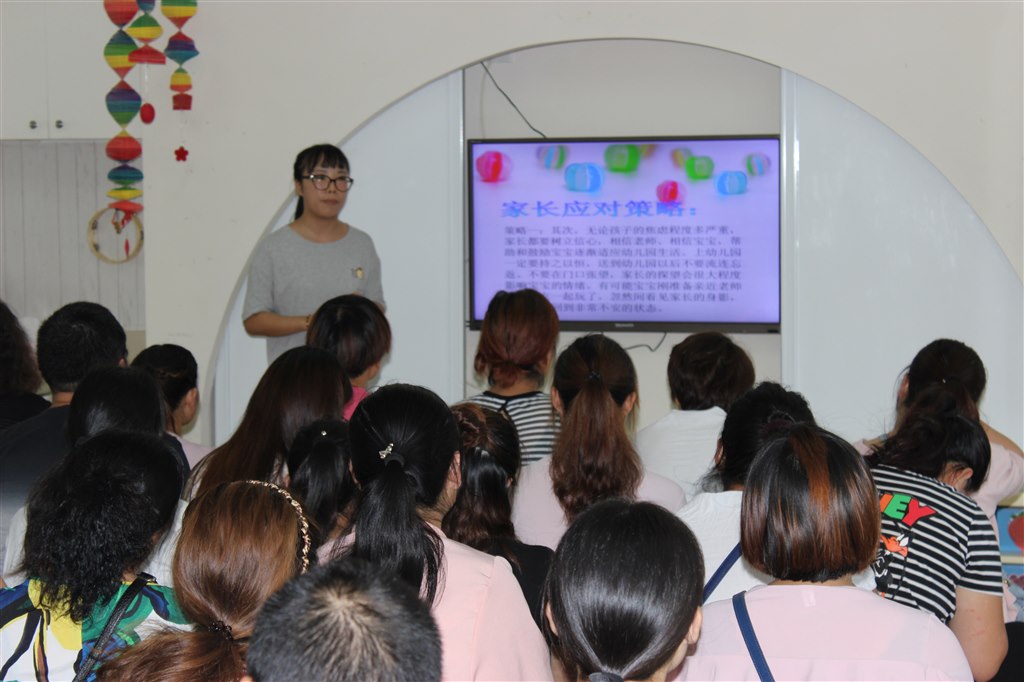 随后,家长们又参加了与班级老师的座谈活动。每班教师针对小班新生入学需要注意配合的事项精心制作成PPT,通过文字、照片、视频等多种形式向家长介绍班级基本情况、开学后即将开展的一系列的活动、家长工作等内容,并在生活教育这块进行重点分析、总结,有条理的为家长传递了幼儿园正确的教育理念以及本学期的发展目标。