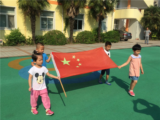 升旗仪式:中二班神气的四位小旗手在进行曲中护送国旗入场,随着音乐唱响慷慨激昂的国歌,将鲜红的五星红旗缓缓地升向蔚蓝的天空。