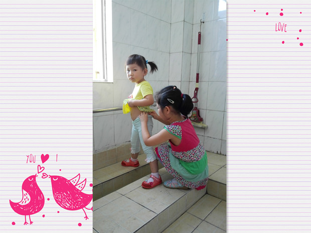大班的小朋友们来到弟弟妹妹中间,和他们结成“一对一”式的好朋友,与他们相互问好,那关爱的神情溢于言表。瞧,大班哥哥姐姐们看到弟弟妹妹在流眼泪,都争着拿餐巾纸给他们擦眼泪,给他们讲故事,安慰他们;听到妹妹说渴了,姐姐连忙带着妹妹去喝水;还带妹妹上厕所,帮他们整理裤子……一个个都像小大人的样子,真心地为弟弟妹妹们服务!整个活动过程中,孩子们都非常认真,没有一个孩子故意扔掉弟弟妹妹自己单独玩,每个人都注意放慢脚步带着小弟弟妹妹做着有意义的事情。
