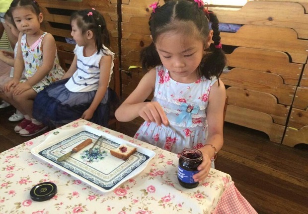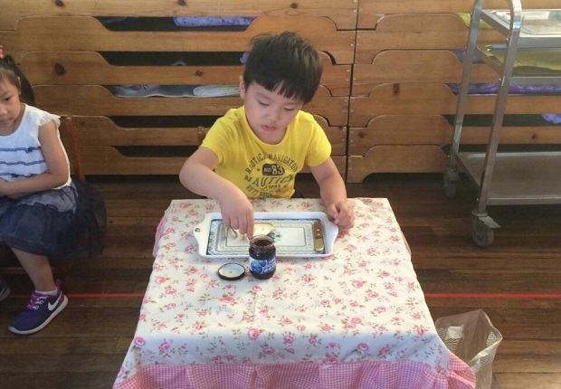 涂抹果酱是蒙氏教育工作里,日常生活领域中食物准备方面的一项工作,看似简单却通过提供真实的材料让儿童在预备好的环境中动手操作,训练孩子的小肌肉动作发展,丰富好的生活经验,激发儿童潜能,在宽松,愉快的环境中构建独立,自信,专注,协调等能力,为以后的学习和生活打下良好的基础。