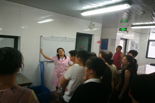 接着在万华老师的带领下,家长们参观了幼儿园的餐具消毒区域、厨房和熟菜出口。清晰的讲解,让家长们深入了解幼儿饮食的消毒与制作流程。严格的制度与井井有条的管理得到了家长们的一致赞许。最后,几位热心的家长还书写了参观后的感悟与我们分享,为幼儿园的发展提出了宝贵的意见。