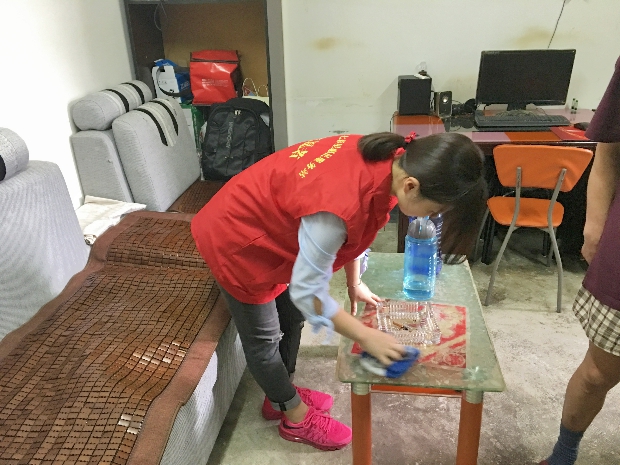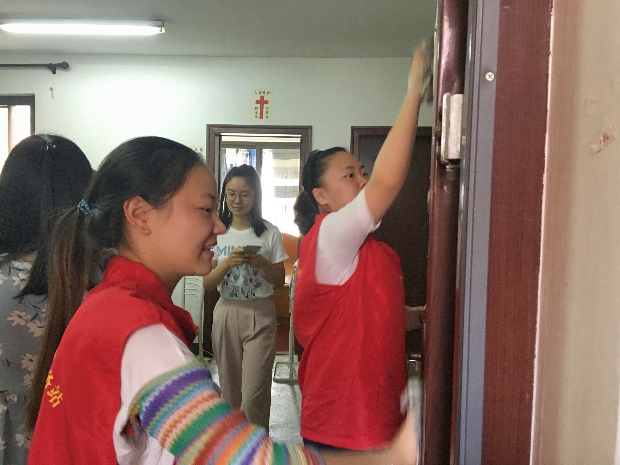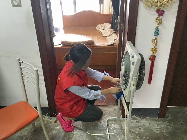 随后,彩虹幼的志愿者们帮助梁平辉先生将家中的一些卫生工作完成了。有的教师帮助擦大门、有的老师将茶几和风扇擦干净了。虽然都是一些小事,梁平辉先生却对彩虹幼儿园教师们的慰问表示了深深的谢意。