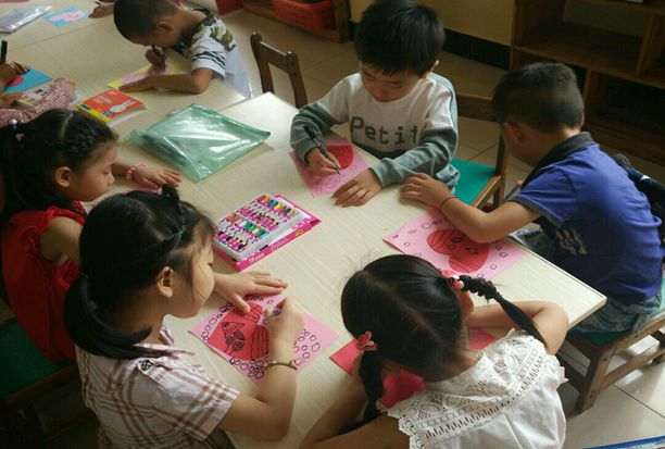 “老师老师我爱你,你的话儿甜蜜蜜。教育我们快快长,长大为国出大力!”大班小朋友们深情演唱的《老师老师我爱你》,给老师们送上了甜蜜蜜的祝福……小朋友们发挥自己的想象力,或剪裁,或彩绘,灵巧的小手绘出一张张美丽的贺卡,细腻的心思开出一朵朵绚丽的小花。孩子们自制的贺卡,饱含着孩子们对老师的一片真情,尽管并不都十分精美,但是却让感动和幸福流淌在每位老师心间。