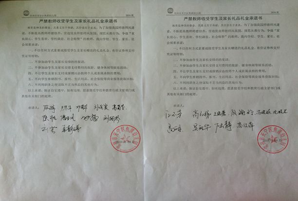 承诺——老师们郑重地写下了一份师德承诺,播撒爱的种子