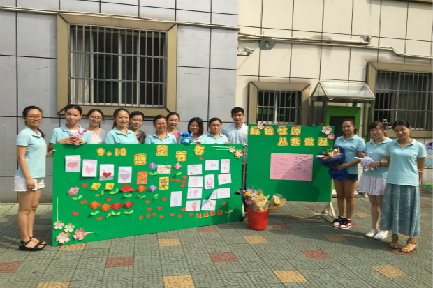 今天一早孩子们就将亲手画的图画,装饰在了校园门口的展板上,每位老师都能感受到来自孩子们的情意。在展板上承载着孩子们对老师的祝福和感谢,将自己最喜爱的老师画成了图画,有趣生动,寄托着学生对老师的感恩之情;一朵朵鲜艳可爱的手工鲜花,抒发着学生对老师的爱。老师们都心领神会的微笑着站在展板前合影拍照,将这一美好幸福的时刻永远留住。