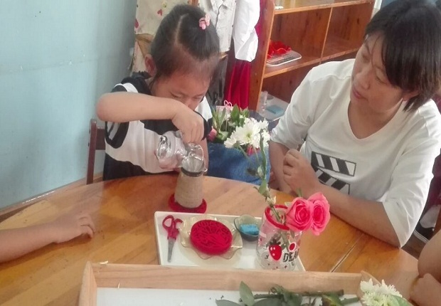 插花是蒙氏教育工作里,日常生活领域中的一项工作,这种日常生活活动满足了孩子模仿大人执行身边活动的先天欲望,活动的每一步都是一个实际生活的技能。这些日常生活活动的经验将帮助孩子获得对运动肌肉的控制感,并训练他们的逻辑思维方式,有助于促进孩子的独立发展,帮助孩子更好地适应社会。