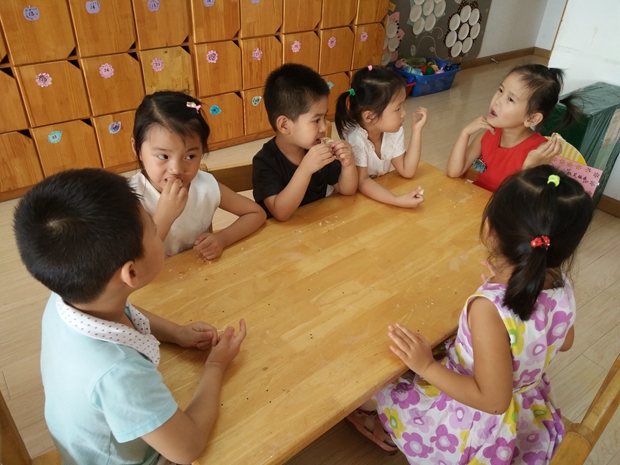 月饼是中秋节不可缺少的食物之一。虽然孩子们在家也吃过月饼,可是,和这么多好朋友一起过中秋、品月饼还是第一次。瞧,他们有的人在认真观察、有的人在小声讨论、有的人在看看闻闻、有人在细细品尝……不同口味的月饼,吸引着宝宝们的目光。在大家一起的品尝中,中秋的甜蜜已经走进了他们的心里。
