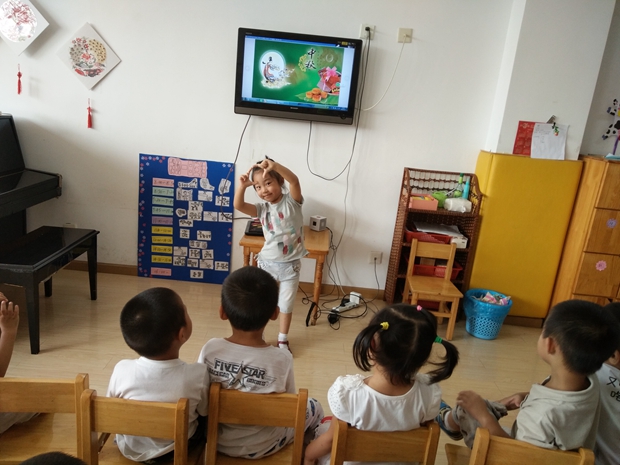 中秋是我国的传统节日,有着一个又一个的传统故事流传下来。瞧,孩子们早已做好了准备,带来了一个个有趣的中秋故事,用好听的声音,抑扬顿挫的语调讲述着;而其他小朋友都睁大眼睛,听得好认真,不时还能回答一下问题。中秋故事让孩子们知道了:原来过中秋节还有这么多有趣的事情呢!