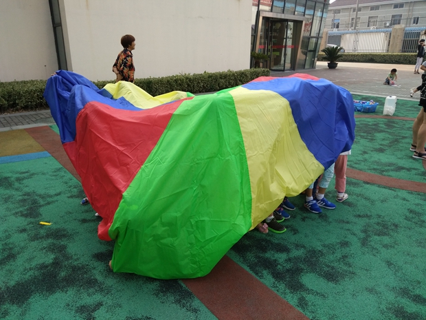 皮亚杰提出:“幼儿的智慧源于材料”,可见材料对幼儿来说是打开智慧大门的钥匙。材料作为幼儿进行游戏的物质条件,是幼儿游戏的前提和基础,它直接影响幼儿对活动的兴趣,是否满足幼儿的种种需求,是否给幼儿带来真正的收获。近日,新城逸境幼儿园全体教师在赵洪秀园长的带领下,开展了以“彩虹伞”为材料的课程游戏化专题系列活动。