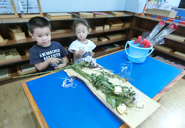 花是美的象征,花是真理的化身,无论一朵花,一束花,一盆花,都给世间带来不同的意境。为了更加美化教室,老师带来了各种各样的花,让孩子自己动手来学插花。