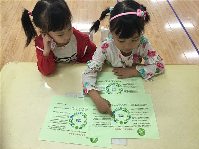 活动当天,孩子们也为无车日献出了自己的一份力量。瞧,中班的孩子们多聪明呀!她们不仅为“无车日”想出了多种绿色环保出行”的好方法:步行、骑自行车或者坐公交车,而且还画上步行、自行车、公交车等绿色出行的标记。此外,我们还成立了环保小天使小组,为每一个前来幼儿园的爸爸妈妈递上精心准备的无车日宣传单,希望通过这样的行动来将“绿色出行”的讯息传递给身边更多的人。
