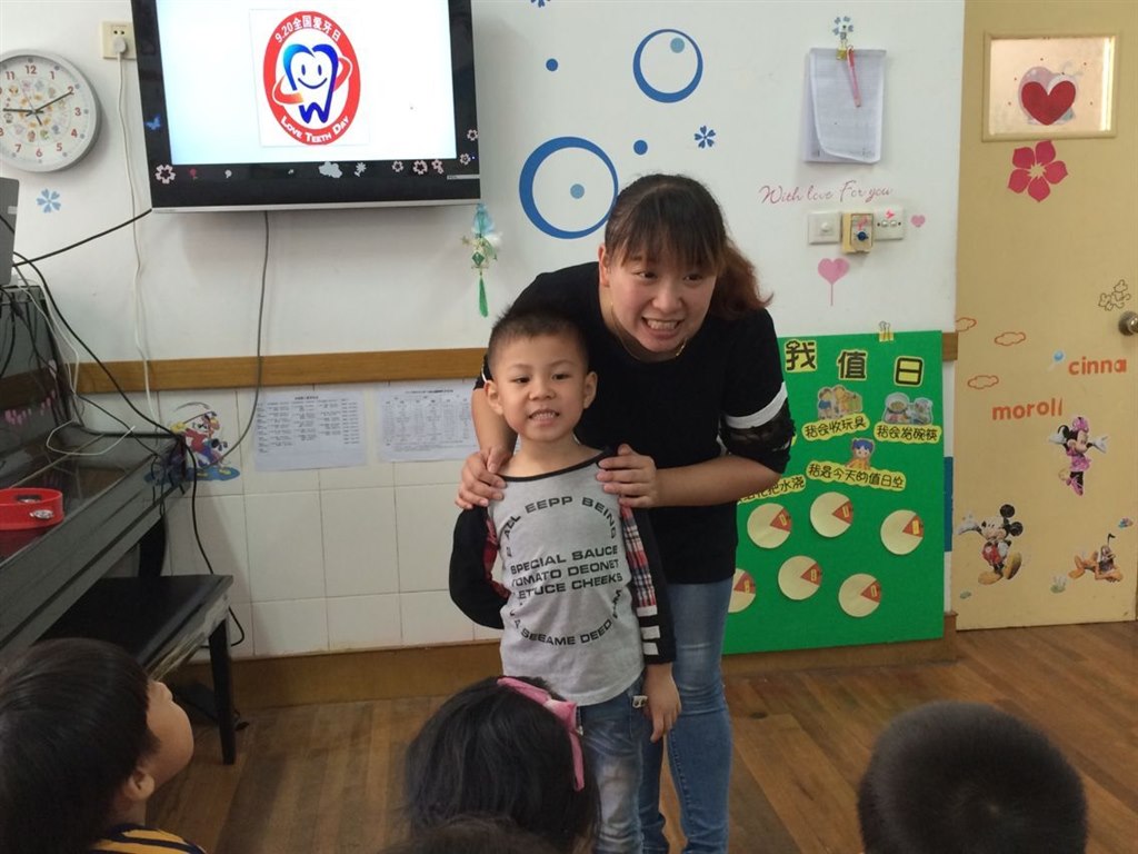 活动以“爱牙知识抢答”开始!由老师提出各种关于爱牙的问题,在老师激情洋溢的组织下,孩子们一起踊跃抢答,这个抢答过程俨然是一堂生动有趣的牙齿保健课,大家在抢答题目的过程中获得了爱牙知识。老师再通过让孩子观看有关爱牙视频使孩子们懂得了少吃糖果,防止蛀牙的道理,并提醒他们养成每天早晚刷牙的习惯。孩子们在开开心心的活动中,掌握了基本的护牙常识,对他们来说非常有意义。