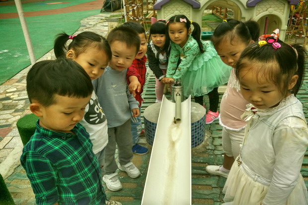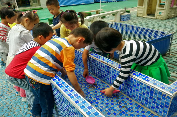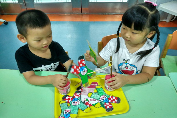活动中孩子们对每个小游戏都充满了好奇,洋井为什么会打出水?船在水里为什么会流动,黄色小片塑料为什么会在泥工板上旋转,为什么一把钥匙只能开一把锁呢?万花筒里为什么会有这么多神奇的图案等等。面对孩子们强烈的好奇心,老师们不是回避,而是让孩子在游戏过程中动手、动眼、动脑、动嘴的体验中对科学有了形象直观地认识; 通过小小的游戏使孩子们对科学的兴趣更浓了。