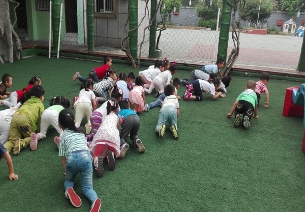 游戏结束了,孩子们还意犹未尽,老师又带孩子们来到了软质草坪上,这一次小朋友们化身小蚂蚁爬一爬,虽然小朋友爬的时候有快有慢,有时可能会擦伤,爬的过程也非常非常累,但小朋友还是都坚持爬到了终点。老师还对小朋友爬行时的各种爬法和姿势进行了比较并总结出了怎样爬才能爬的更快的方法,在游戏中学习知识,孩子们可谓是收获满满啊。