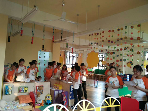 此次评比活动以班级为单位,老师们各尽所能,活动中,老师们带着欣赏与学习的心态走进每个班级、认真聆听班级老师对大环境、主题墙饰、特色墙饰、家园联系栏等环境设计的讲解,相互交流探讨,创设了一个个丰富多彩的区域:小班的小超市;中班的餐厅、照相馆、奶茶店、肯德基店;大班的烧烤店、超市等。老师们根据幼儿不同年龄特征和兴趣投放了不同层次的材料,精心挑选并制作了各区域的操作材料,材料的实用性、创意性、可操作性在活动中展现的淋漓尽致。在园领导的带领下,评分小组对各班区域布置进行了检查,并对区域的设置、材料的投放、废旧材料的利用及教育性、美观性、创新性等方面进行评比。
