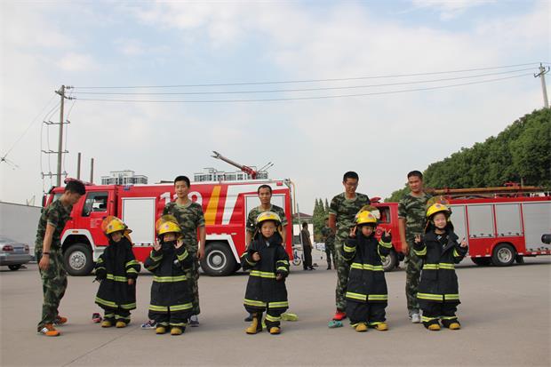 常州郑陆消防队的队员叔叔走进了幼儿园,他们为孩子上了一堂消防安全实践课。消防队长吴队长向小朋友讲解了安全的重要性,并展示了各种消防用具:氧气罩、高压水枪、氧气瓶、防毒面具、灭火器,其中还有切割金属用具呢!他们还向小朋友们讲解了灭火器的构造和使用方法,并向孩子们展示了他们神速、精练的战斗基本功——快速的穿戴消防服、鞋子、安全帽子,孩子们一个个看得露出了惊奇、佩服的眼神。最后,孩子们在消防叔叔的帮助下,还一展身手呢!他们穿上了消防服,体验了一把消防叔叔的全副武装,并现场目睹与体验了在消防车高处喷水的场景。