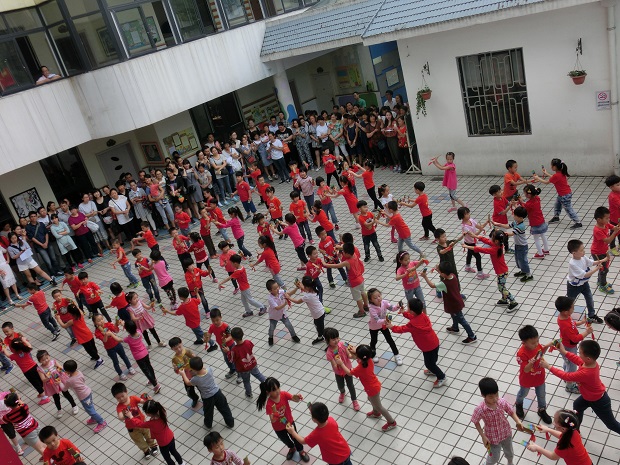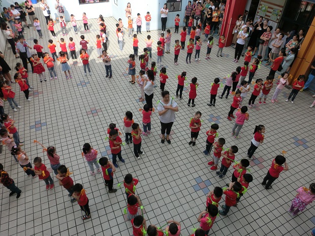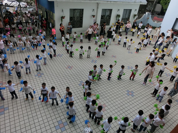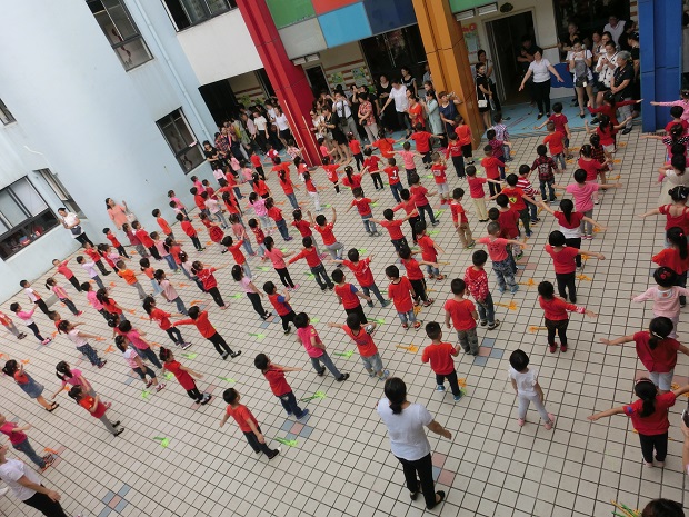 为了让孩子体会到做早操既能锻炼身体,又能培养幼儿从小爱运动和集体荣誉感的精神,使他们在运动中感受到快乐。我们艺术幼儿园于2016年9月27日上午举行了小、中、大班幼儿早操比赛活动。本次活动内容包括律动和徒手操,早操比赛由各班家长代表担任评委,本着公平公正原则。