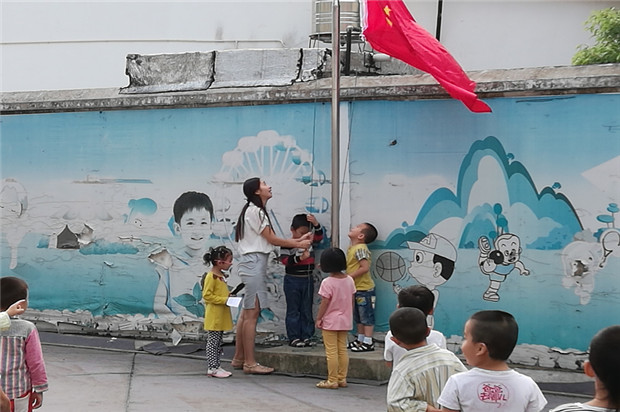小小的升旗仪式,是对小朋友的一次爱国主义教育,让孩子们从小懂得爱护国旗,尊敬国旗,维护国旗的尊严,萌发对祖国的热爱。让升旗仪式成为孩子们德育教育、文明礼仪教育一个平台,一块阵地,成为幼儿园又一道靓丽的风景!(范庆庆 姜晔)