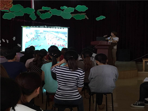 首先,两位副园长分别向各位新生家长介绍了我园的一些基本情况。无论是教室、专用室、户外场地等硬件环境,还是师资配备、各类评价体系等软件条件,无一不体现了我们“顺木之天、康宁而学”的办园理念。随后,两位园长又从收费规范、设施规范、管理规范、教学规范及保健规范五个方面介绍了我园依法办园的相关工作,做到让家长放心。生态运动游戏和每月一节活动一直以来都是我们中心园的特色,两位园长又着重向家长介绍了这两方面的内容。丰富的照片、生动的视频,让家长了解我园生态运动游戏的重要性的同时,也让家长看到了目前我园为幼儿健康发展所做的各项工作。同时,园长也向家长提出了“理解、鼓励、保障”的建议,以期望家园共促幼儿的健康成长。