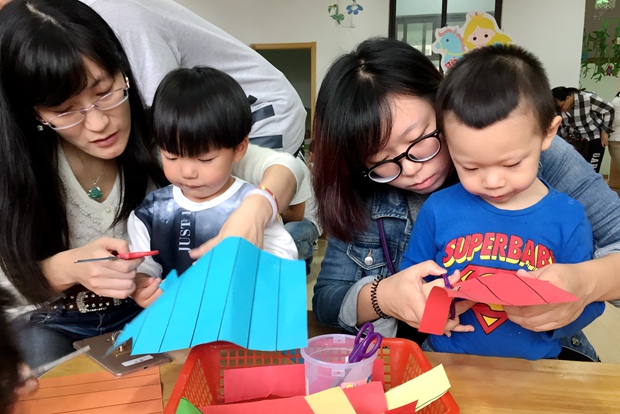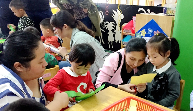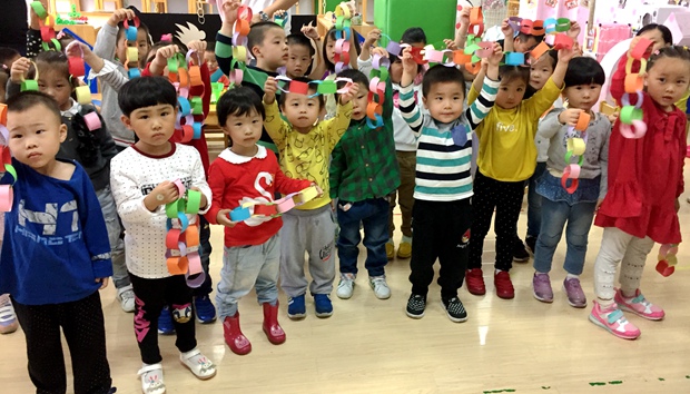 活动中,孩子和父母们,积极动手动脑,在大家的巧手之下,制作了许多美丽多彩,喜气洋洋的彩琏,布置在教室里,走廊上。通过大家合力的制作,传递的是一份对祖国妈妈美好的祝福,对孩子而言,集体生活中的第一个国庆节,真的是印象深刻。活动的最后,孩子们展示的歌曲、儿歌、手指游戏等节目,更是将整个庆祝活动推向了高潮。