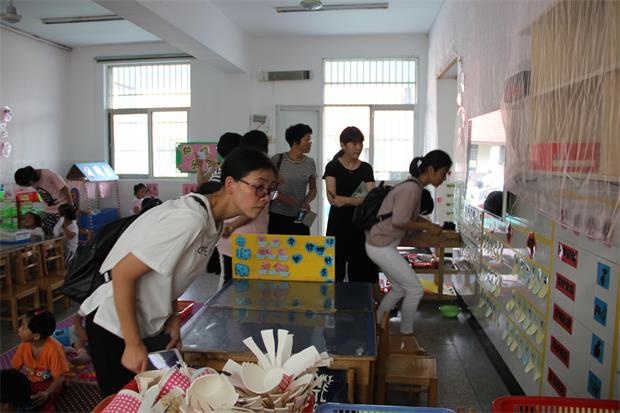 在参观班级区域游戏的时候,老师们对班级环境和区域游戏非常的好奇,纷纷拿出相机捕捉每一个精彩瞬间。特别是班级的区域规则、区域游戏的玩法、晨谈墙等,都成为了参观者可借鉴的实践点,她们从东幼老师身上看到了真实、细心和智慧。