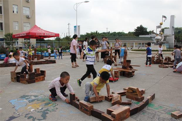学习交流活动在丰富多彩的户外游戏中拉开序幕。户外场地上,有的孩子用油桶和梯子搭成高高的桥,大胆、果敢地在桥上走来走去;有的孩子用纸管玩出了很多的花样,有跷跷板、小船、帐篷等;有的孩子在玩沙池挖寻宝藏;有的孩子在用碳化积木搭建了各式各样的围墙……孩子们那一副副生龙活虎、胆大细心的样子,让参观的老师频频竖起大拇指。