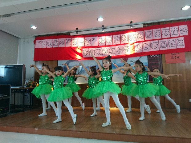 在这开心的日子里,孩子们给爷爷奶奶们带来了精彩的节目——荷塘月色,孩子们用自己的行动、自己的热情、自己的舞蹈给老人们带来了欢乐。瞧,孩子们一会似蝴蝶飞舞,带爷爷奶奶回忆童年时的快乐;一会又像海鸥飞翔,让爷爷奶奶感受青春的活力。大家都纷纷赞赏孩子们的努力,用热烈的掌声给予孩子认可。看着孩子们的笑脸,爷爷奶奶们都乐开了怀。