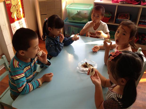 活动前期,师幼共同搜集有关重阳节的诗歌、图片、文字等资料,孩子们用自己理解的方式述说着重阳节的来历以及风俗习惯。登高、吃重阳糕、赏菊花,孩子们在国庆假期和班级中,都一一体验,体会到了浓厚的节日氛围,抒发了爱老敬老的美好情感。