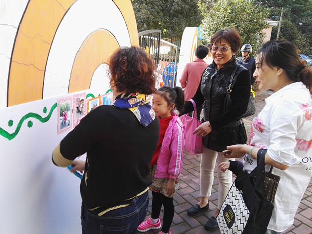 整个活动分为三步进行,首先在10月8日这一天,我们全园的孩子们在班里老师的带领下,精心设计了一个相框,并提出回家后为爷爷奶奶(外公外婆)做一件力所能及的事,然后再一起合影,将照片贴于自己制作的相框内。然后在今天早晨来园的时候,和自己的爷爷奶奶(外公外婆)一起,将自己的相框展示到幼儿园事先布置好的展板上进行展示,并说一句祝福长辈的话。最后在教室内,教师组织孩子们一起分享重阳糕,感受节日的快乐。