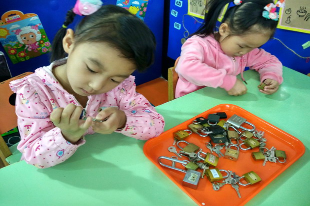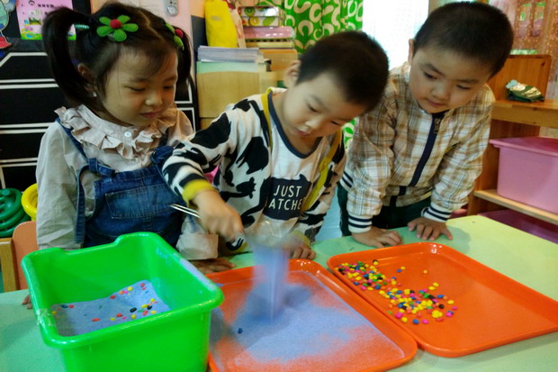 在科学活动中孩子们对每个小游戏都充满了好奇,天上为什么会有雨落下来,沙和小石子通过筛子为什么能分离出来,哪只乌鸦能先喝到水,弹珠为什么滚得那么快,蚂蚁有几只脚等等……面对孩子们强烈的好奇心,老师们不是回避,而是让孩子在游戏过程中动手、动眼、动脑、动嘴的体验中对科学有了形象直观地认识; 通过小小的游戏使孩子们对科学的兴趣更浓了。