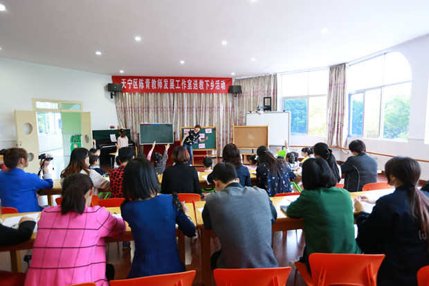 乡村教师队伍专业发展,是城乡教育均衡发展的关键。常州市是江苏省率先实施“城乡教师牵手行动,推进教育均衡发展”的城市之一。天宁区“陈青教师发展工作室”以及“天宁幼教许卓娅教育研究工作坊”的成员,从2012年起,就开始与乡村幼儿园进行结对,定期开展专题讲座、送课下乡、听课评课、互动研讨等支教活动,不断提升农村乡镇幼儿园保教质量,受到农村幼儿园教师们的欢迎。近日,幼教工作室成员走进武进潘家幼儿园,开展“幼儿园教学游戏化”支教活动。