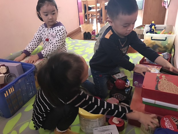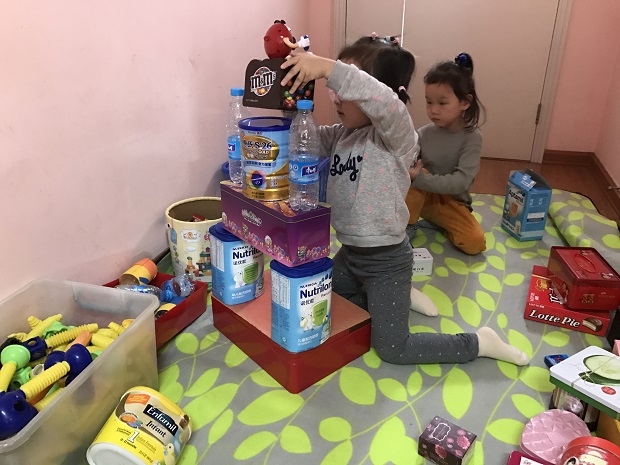 孩子们在建构区中一起来玩耍,一起来学习,一起激发聪明大脑。