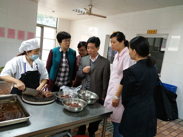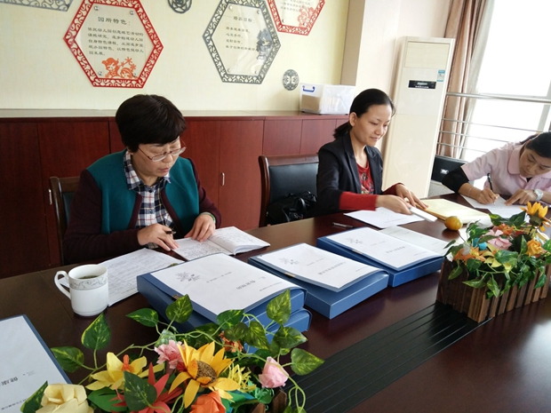 检查小组在吴蓉园长的陪同下首先查看了教室的布局、食堂卫生以及仓库物品摆放等多方面的现场情况;随后,吴蓉园长对保健工作做了汇报,又对照考评标准逐项翻阅,审核了行政管理、基础设施、营养与膳食管理、健康检查、卫生消毒与防病、安全保护、体格锻炼等多项台账资料。