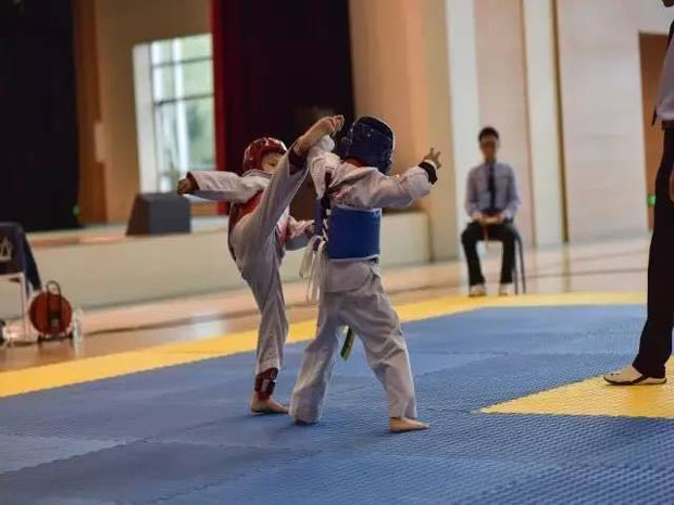赛场上,小学与幼儿园的小朋友同台竞技,虽然雕幼的队员年龄小,但凭借着扎实的基本功和在比赛场上的出色发挥,屡次收获精彩的得分。回顾比赛过程,既可以看出雕幼小运动员在日常训练中的刻苦和拼搏,也能看出运动特色给孩子们带来健康和自信。如混双品势和团体品势中,能彼此动作协作一致,很好展示团体精神,特别值得一提是在实战性项目中,雕幼小运动员们既能在冷静中防守,又能出其不意地做出漂亮的得分动作,不时赢得全场掌声。