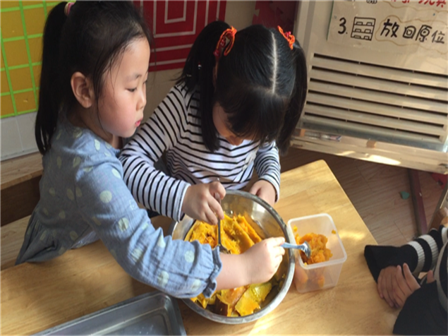 广幼:巧手忙做饼,体验真生活——记大班南瓜饼制作活动