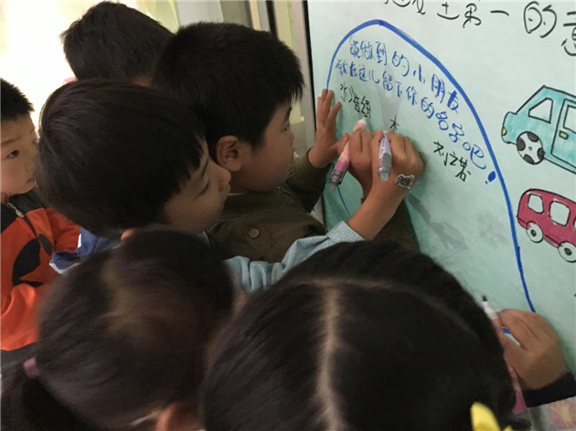 有的班级发布了“文明出行”的倡议书,每个孩子都签上了自己的名字,争做“翠幼文明宝宝”;有的班级对参观博物馆的注意事项展开讨论,如:博物馆有哪些标记?参观博物馆的衣着要怎样?博物馆内有哪些事项要注意等等,孩子们用自己的方式告诉大家,在这次参观活动中我们需要注意些什么。