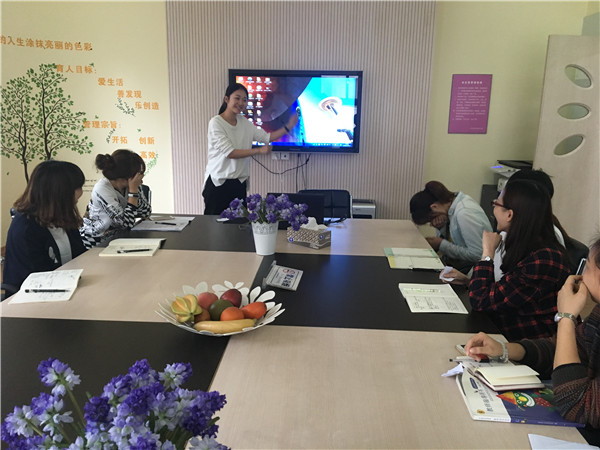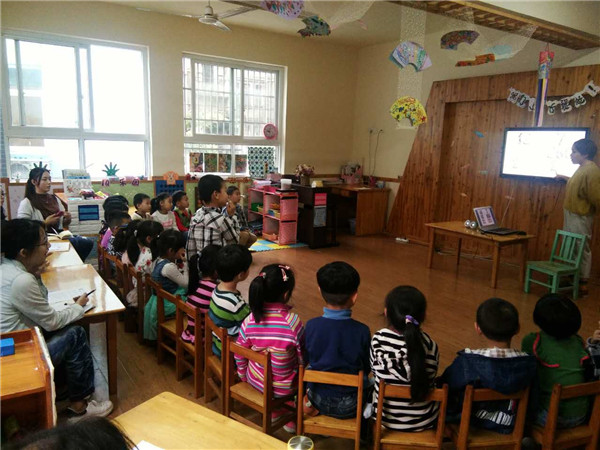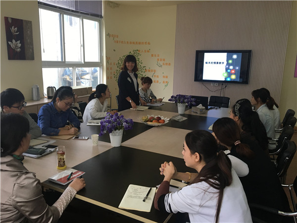 接着是由承佳楠老师将自己培训时所学到的应彩云老师的讲座《绘本的情景教学》进行分享。在分享过程中,承老师结合ppt、绘本书,带领老师们遨游在书的世界,在游戏的过程中,让老师明白在阅读图书时教师的任务不仅仅是把故事读给孩子听,还要通过多种渠道,深层次地挖掘绘本的价值,更将应老师“顺其自然、顺势而为”的理念传递给了每位老师。