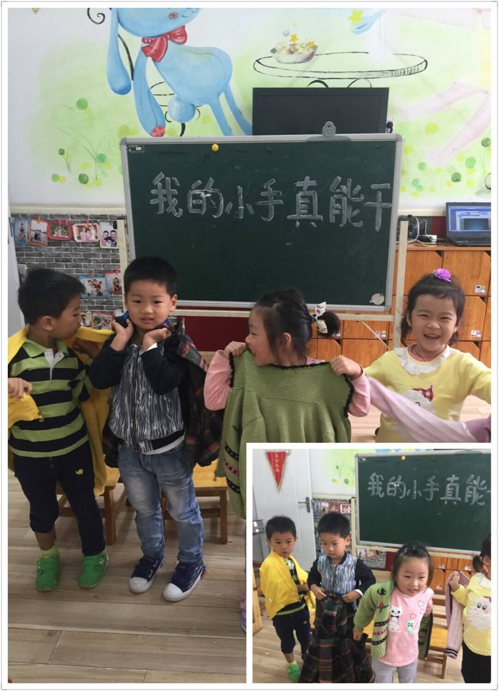 红东幼儿园里传出了一阵阵的“加油”声。原来是幼儿园小班正在开展的一场别开生面的“我的小手真能”活动。