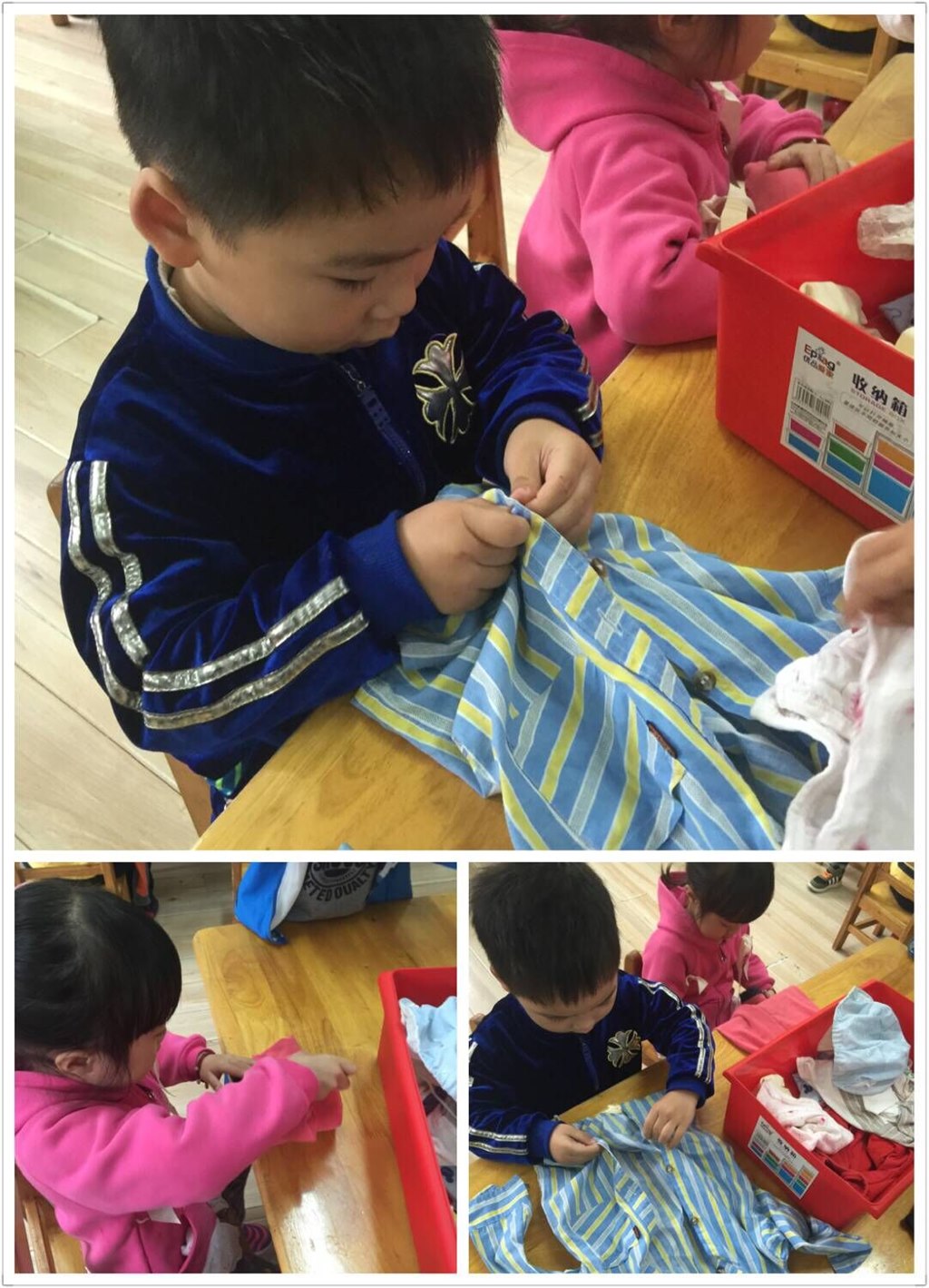 简单的穿脱衣服并叠放整齐是幼儿基本的生活自理能力。幼儿园《3-6岁儿童学习与发展指南》中指出:要鼓励幼儿做力所能及的事情。通过此次比赛活动,孩子们的自我服务和生活自理能力都得到了不同程度的提高,也增强了小班孩子“自己的事情自己做”的意识,真正体现了寓教于乐!(xsq)
