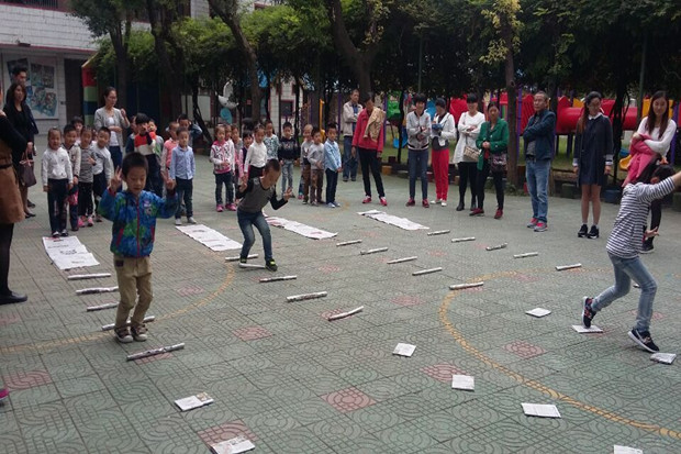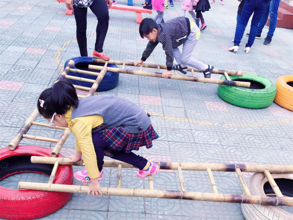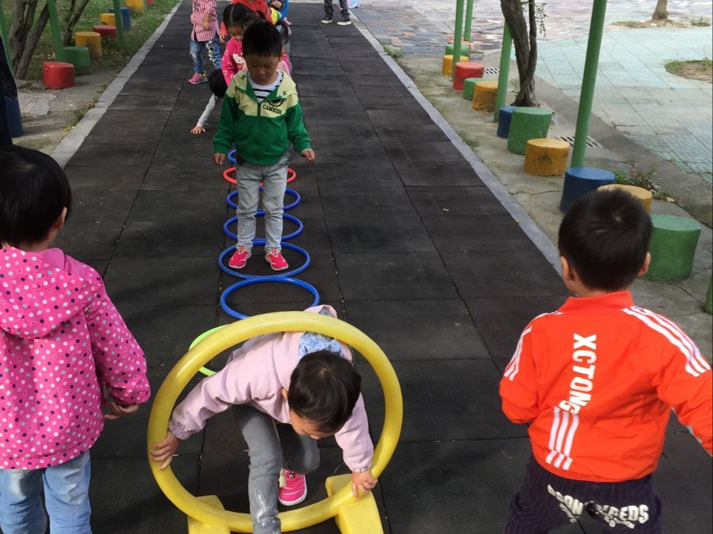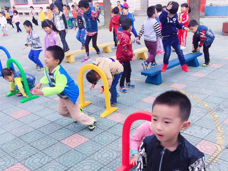 各班教师根据本班幼儿的年龄特点创设相应的游戏内容,并对孩子的活动情况认真观察、指导。室内主要以区域游戏为主,教师们为孩子创设了丰富的区域活动,非常新颖,充满趣味性;室外则以小型多样的体育游戏活动为主,在老师的带领下:幼儿们走梅花桩、玩飞碟、钻圈、跳绳、玩降落伞…玩得不亦乐乎。孩子们时而钻、时而跳、时而踩高跷,玩得不亦乐乎,操场上随处可以看到孩子们活泼的身影,听到孩子们开心的笑声,老师们全身心地投入到孩子们的活动中来,带领孩子一起动起来,让操场充满了生机和活力。教师们对活动进行科学合理的组织与调控,使孩子们得到了积极有效的锻炼。丰富的晨间体育器械锻炼模式让 “我不想玩”的孩子没了,更多的孩子在奔跑,在欢笑。